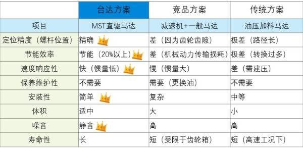品質(zhì)提升:直驅(qū)帶動負(fù)載,無背隙、精度條件佳,準(zhǔn)確控制熔膠量