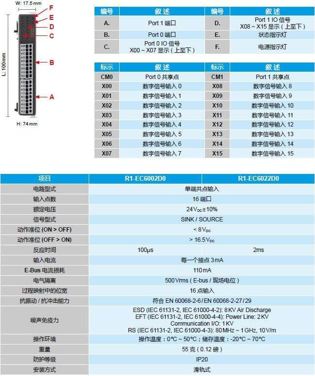 EtherCAT 16 通道數(shù)字輸入擴(kuò)展模塊 - R1-EC60XXD0
