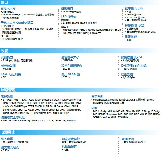 完整L2網(wǎng)管功能: VLAN, QoS, LACP, IGMP & SNMP v1/v2c/v3等